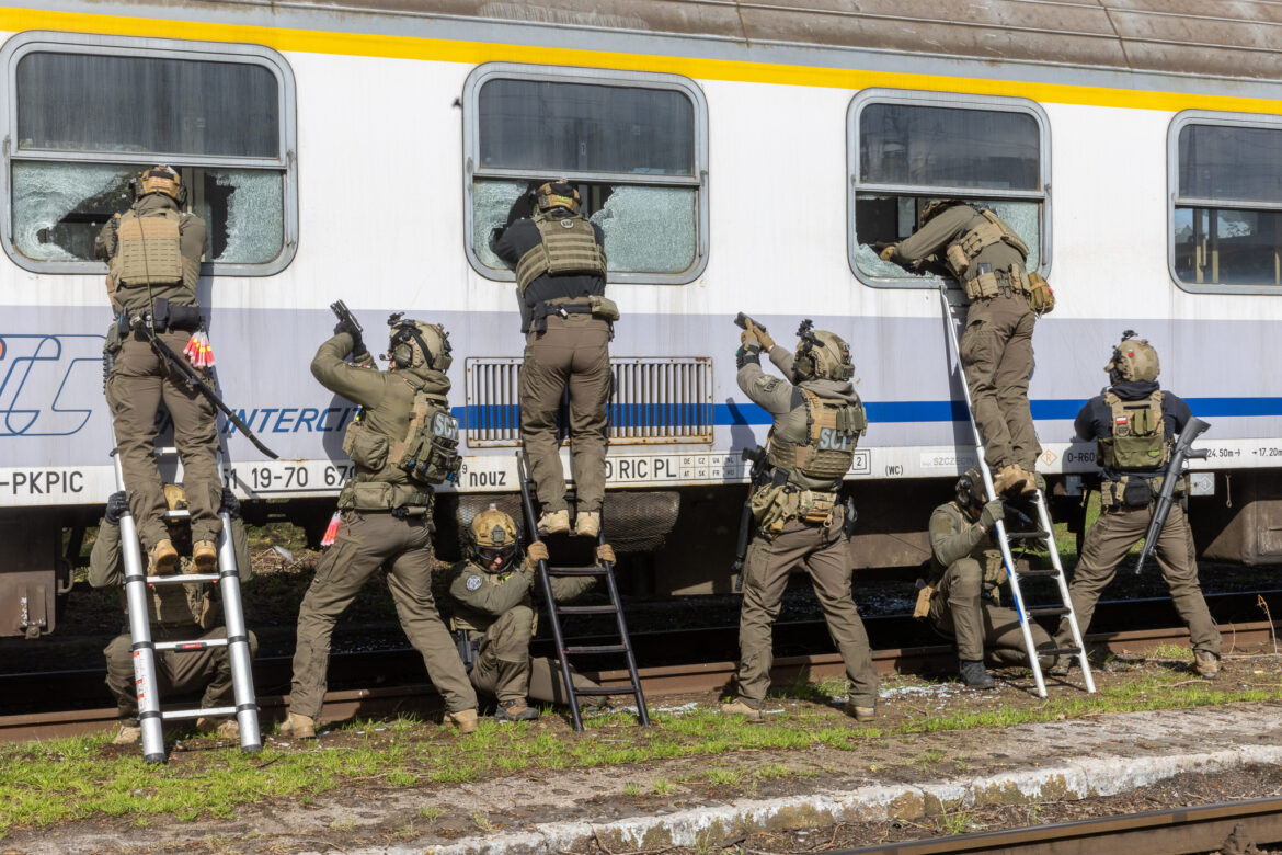 W miniony wtorek rozpoczęły się trzydniowe, niezwykle intensywne ćwiczenia dla ponad 100 funkcjonariuszy i operatorów z całego kraju. Ćwiczenia taktyczno-medyczne zorganizowane przez Wydział ds. Bezpieczeństwa i obronności Komendy Głównej Straży Ochrony Kolei odbyły się w taborze kolejowym zlokalizowanym na terenie grupy odstawczej wagonów PKP Intercity w stacji Gdynia Leszczynki. Ich celem było doskonalenie taktyki podczas bojowych działań, wymiana cennych doświadczeń oraz spostrzeżeń, a także trening elementów, które wymagają fachowej wiedzy instruktorów.