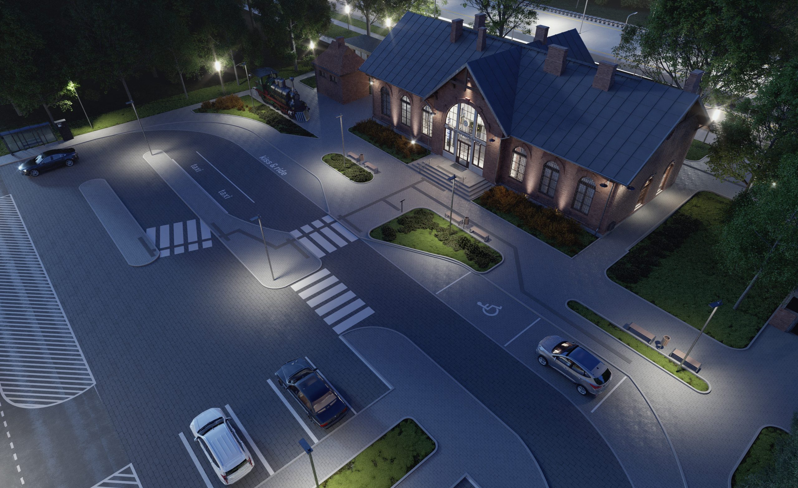 Olbrzymią metamorfozę przejdzie plac przed dworcem. Przebudowany zostanie układ komunikacyjny. Wzdłuż frontowej fasady budynku pojawią się miejsca postojowe dla osób z niepełnosprawnościami oraz typu kiss&ride. Natomiast nieco bliżej ulicy Henryka Sienkiewicza powstaną dwa wyspowe perony dla autobusów, postój taksówek oraz 9 miejsc parkingowych, w tym dwa przeznaczone dla samochodów elektrycznych. W sąsiedztwie budynku pojawi się również wiata rowerowa. Zabytkowa lokomotywa pozostanie na swoim dotychczasowym miejscu. Z innych prac planowanych w otoczeniu dworca warto wspomnieć o uporządkowaniu zieleni, a także montażu nowych elementów małej architektury (ławki, kosze, oświetlenie).