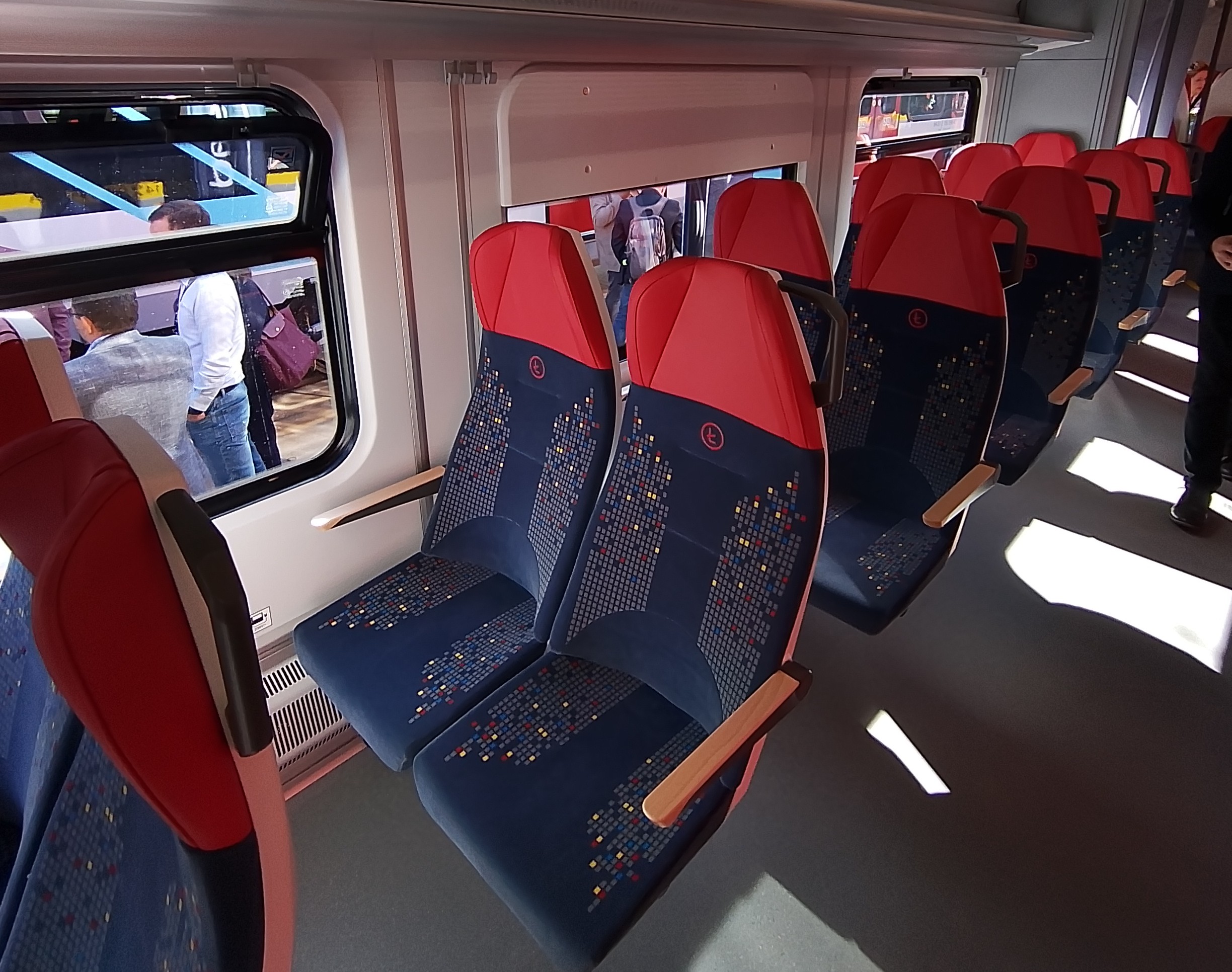Wewnątrz podróżni znajdą nowoczesne, komfortowe wnętrza z 215 stałymi miejscami siedzącymi oraz dodatkowymi składanymi siedzeniami i miejscami stojącymi dla ponad 200 pasażerów. Udogodnienia dla pasażerów obejmują gniazdka elektryczne 230 V i USB, klimatyzowane kabiny oraz dwie toalety.