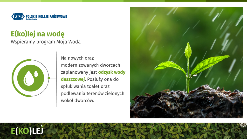 Rozwiązania proekologiczne na dworcach nie są niczym nowym, bo już w ramach prowadzonych w poprzednich latach przez PKP S.A. inwestycji były one sukcesywnie wdrażane. Przykładem może być choćby zbiornik wody deszczowej, z którego podlewana jest zieleń na placu przed dworcem Wrocław Główny czy kolektory słoneczne umiejscowione na dachach dworców w Łańcucie, Leżajsku czy Przeworsku. Jednak to dopiero Program Inwestycji Dworcowych na lata 2016-2023, z uwagi na swoją skalę i zasięg, stanowi prawdziwy przełom we wdrażaniu rozwiązań proekologicznych.
