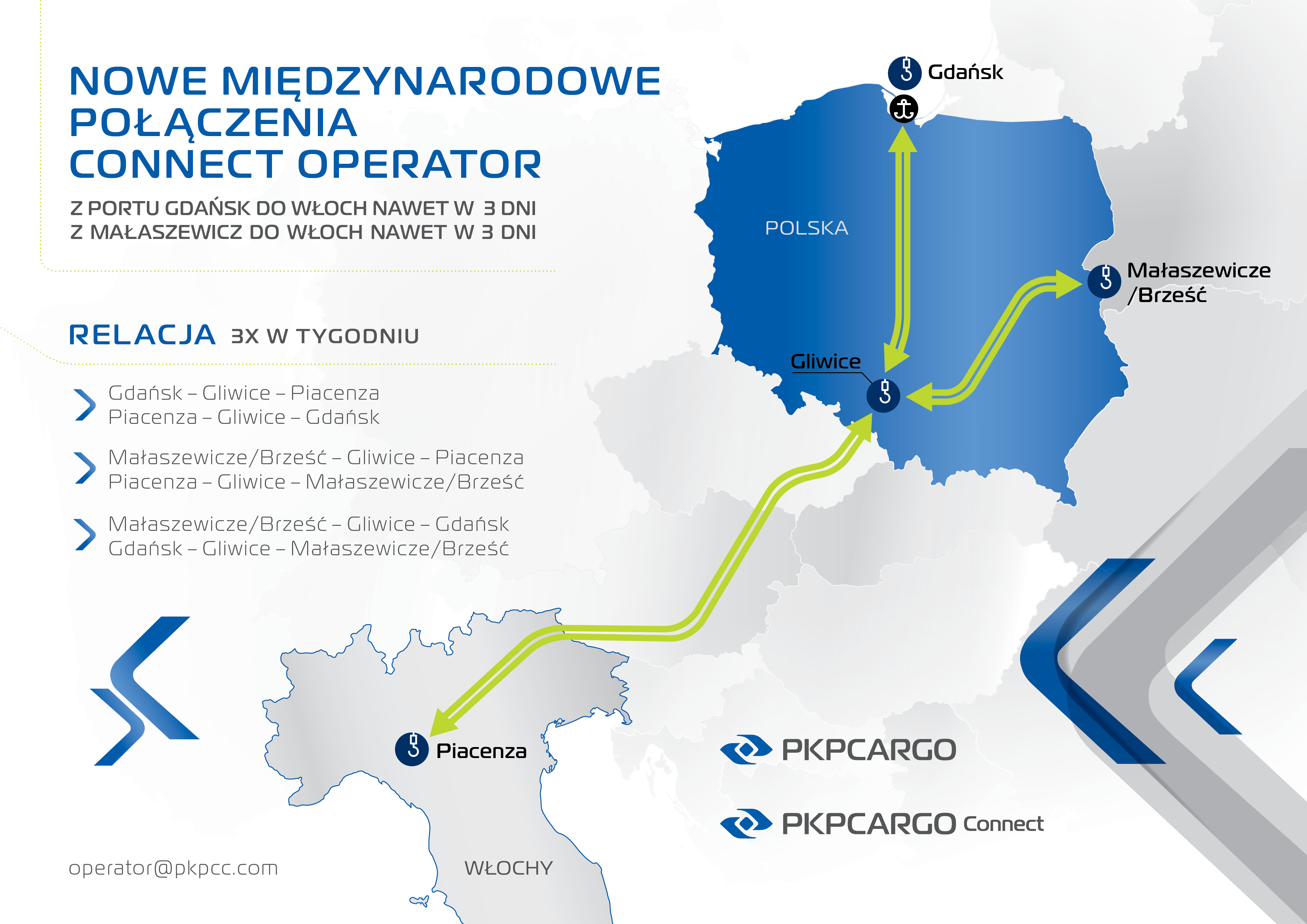 Pierwsze stałe połączenie to trasy Gdańsk – Gliwice – Piacenza oraz Małaszewicze/Brześć – Gliwice – Piacenza i Małaszewicze/Brześć – Gliwice – Gdańsk, ale stopniowo sieć pociągów operatorskich będzie rozszerzana.