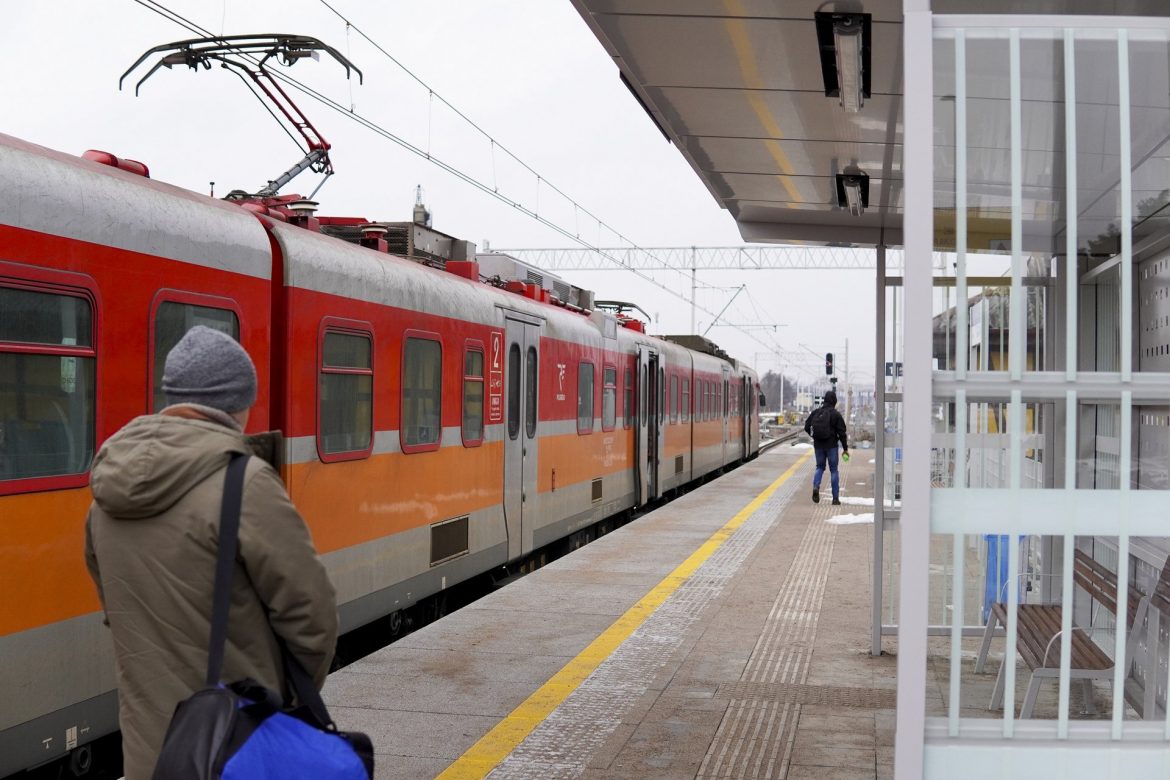 Podróżni na przystanku Ełk Szyba Wschód wsiadają do pociągów z nowego peronu. Wykonawca przystąpił do robót po przeciwnej stronie torów. Na czas powadzenia prac budowlanych dostęp do nowego peronu zapewnia tymczasowy przejazd i przejście w poziomie szyn.