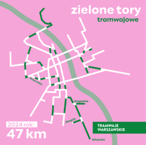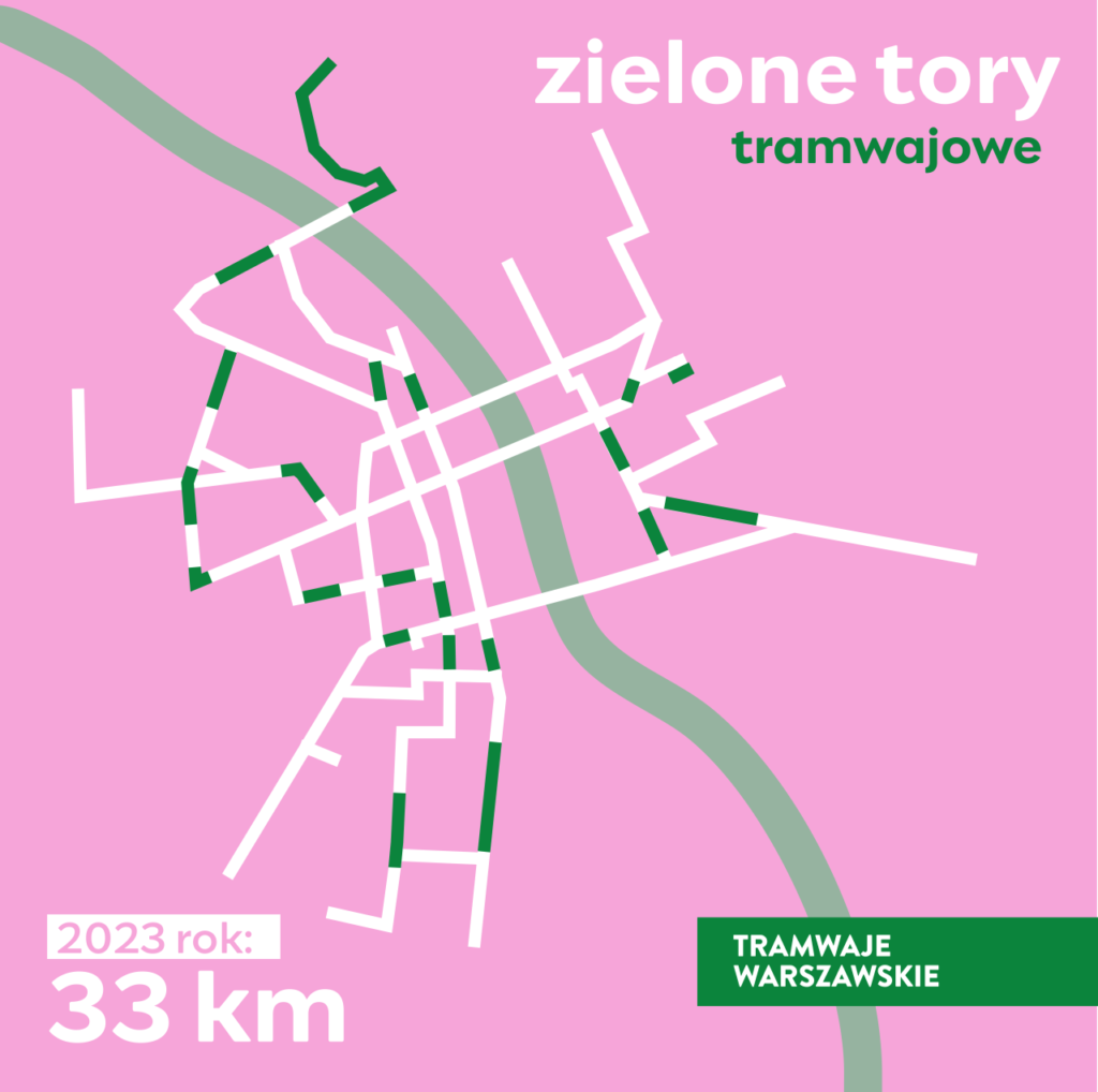 Łącznie w stolicy są już 33 km zielonych torów. W trakcie modernizacji torowisk klasyczne tory z tłuczniem zastępowane są zielonymi. W przyszłym roku, kiedy tramwaje ruszą po nowo budowanych trasach do Wilanowa, na Gagarina, na Stegny i wzdłuż Kasprzaka długość zielonych torów wzrośnie już do 47 km. Wszystkie nowo budowane trasy od razu są projektowane z zielonymi torowiskami. Zielone torowiska znajdą się też na kolejnych trasach tramwajowych, których budowa jest zaplanowana na 2024 i 2025 rok. To linia wzdłuż ul. Rakowieckiej i wzdłuż ul. Bitwy Warszawskiej 1920 do stacji Warszawa Zachodnia. To także trasy, których budowa jest w przygotowaniu na kolejne lata – na Gocław, wzdłuż Modlińskiej, na zieloną Białołękę. Zielone torowiska znajdą się też na modernizowanych trasach – między innymi na Marszałkowskiej, na al. Waszyngtona, Jana Pawła II i ul. Stawki.