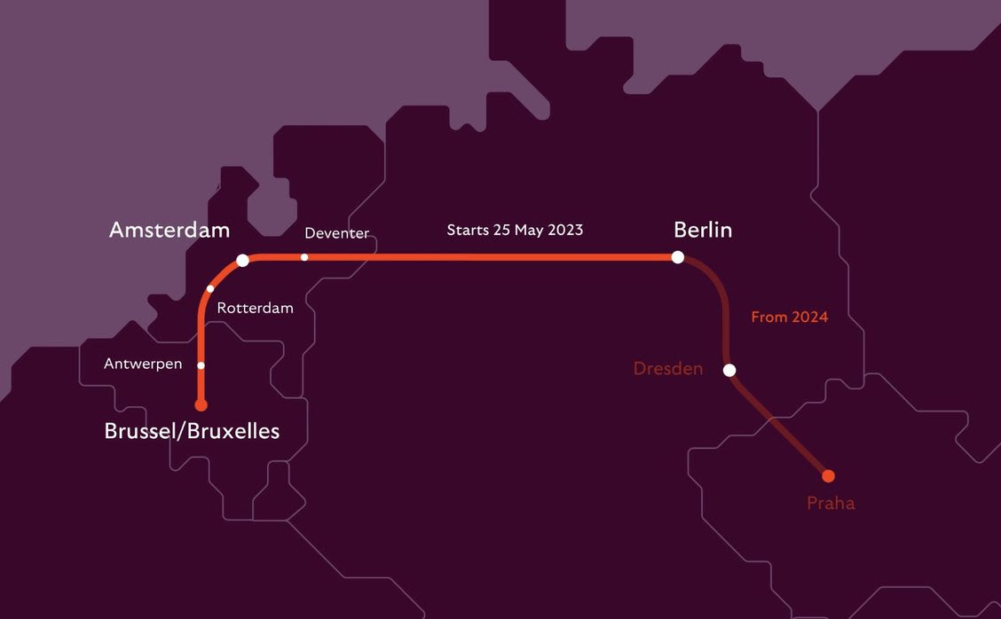 Plany były bardzo ambitne, początkowo zakładano, że dwa składy wagonowe (jeden z Warszawy drugi z Pragi) byłyby łączone w Berlinie, aby w takim zestawieniu kontynuować dalej podróż do Ostendy. To samo tyczyłoby się w drodze powrotnej, gdzie w Berlinie następowałoby rozdzielenie grupy wagonów. RegioJet wnioskował, aby połączenie z Warszawy wystartowało już w grudniu 2021 roku i nawet udało się uzyskać zgodę prezesa UTK na taki termin, jednakże ostatecznie premiera uruchomienia pociągu była odkładana.