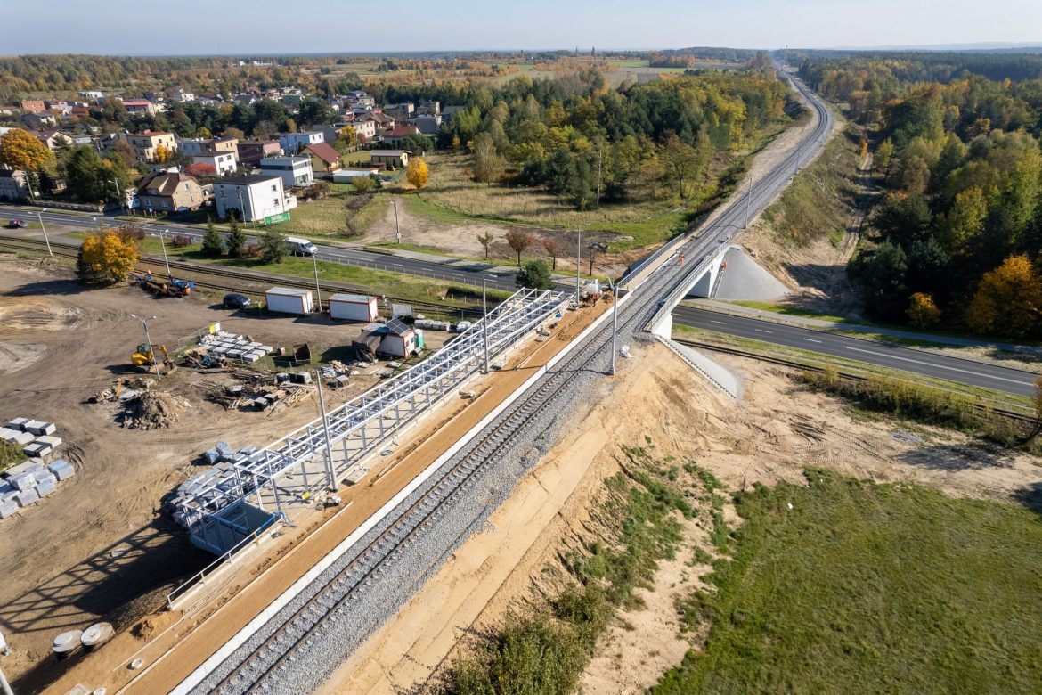 Jak informują PKP PLK, odbudowa i budowa kolejowej trasy Tarnowskie Góry – Zawiercie postępuje zgodnie z harmonogramem. Ważnym elementem inwestycji jest stacja Pyrzowice Lotnisko w sąsiedztwie portu lotniczego Katowice Airport. Na stacji są konstrukcje dwóch peronów. Widać przejście podziemne i pochylnię, którym podróżni będą przechodzić w stronę portu lotniczego. Położono trzy nowe tory. W Pyrzowicach nad drogą (DW 913) jest już nowy wiadukt kolejowy, który zastąpi przejazd. Pod wiaduktem będzie droga, chodnik i ścieżka rowerowa.