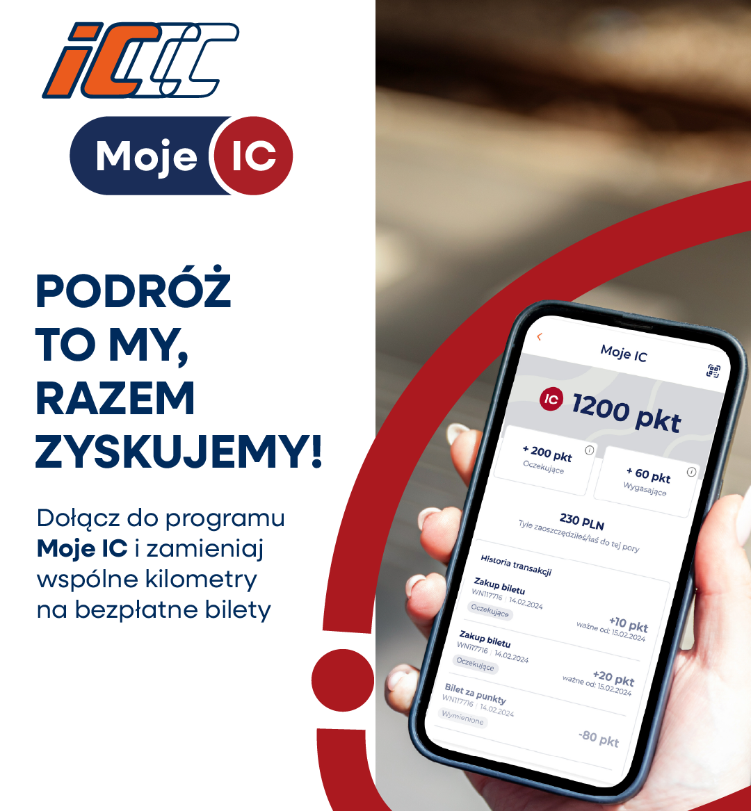 Program „Moje IC” powstał z myślą o stałych klientach PKP Intercity, aby nagradzać ich za częste podróże. Pasażerowie kupując bilet na przejazd pociągiem dalekobieżnym poprzez stronę internetową lub aplikację mobilną przewoźnika, otrzymają za każdą wydaną złotówkę określoną liczbę punktów. Uzbierane punkty będą mogli wymienić na darmowy bilet na kolejny wyjazd. Ponadto aż 1000 punktów mogą otrzymać bez dokonywania zakupów: